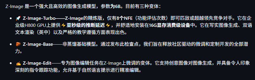阿里开源的Z-Image是一款轻量级文生图模型,参数仅6B,主打“低步数、低显存、高质量”。其视觉质量被报道为可接近约20B级商业模型,同时提供Turbo / Base / Edit三大变体,覆盖高效推理与图像编辑两大场景,并强调中英双语文字渲染与复杂指令理解能力。模型以Apache 2.0许可开放,面向开发者与创意从业者降低门槛。